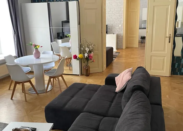スロバキア国立劇場から徒歩で5分以内の場所に位置する150m²のThe Triple Suite For Large Group ブラチスラヴァからは、都市の景色を眺めることができます。